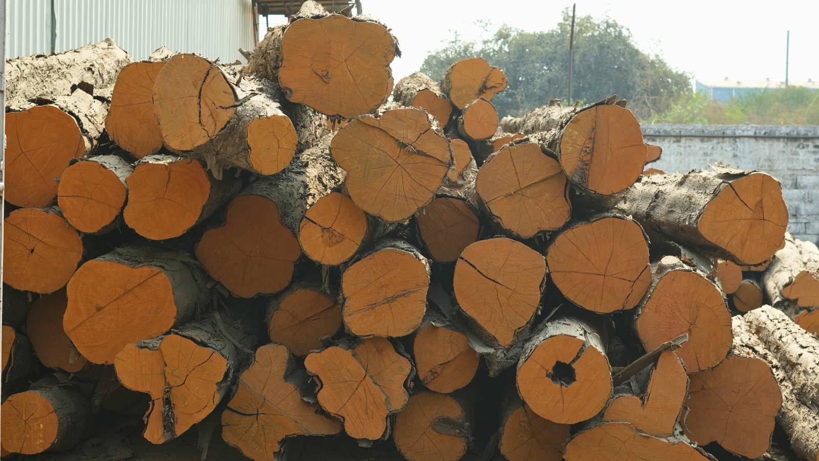 Our Teak logs sourced from responsibly managed forests and FSC-certified Government depots. We maintain a large stock of selected AA-grade teak logs at our log yard, selected for consistent grain, durability, and suitability for high-quality processing across furniture, flooring, and marine applications.